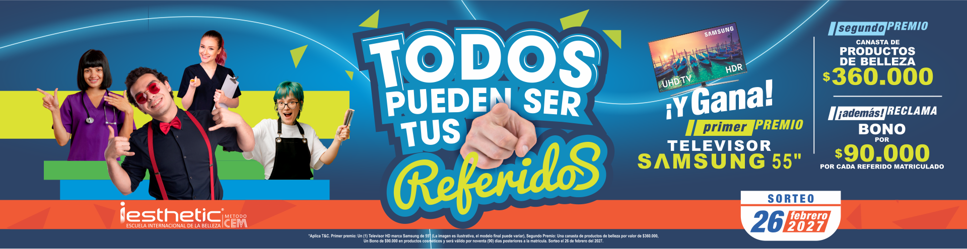 Para el periodo 2026-2027, nuestro “Programa de Referidos IEsthetic Método CEM” brinda la oportunidad a todo el público de ganar $90.000 en productos de belleza por cada referido matriculado y participar en el sorteo de referidos que se llevará a cabo el 26 de febrero del 2027.